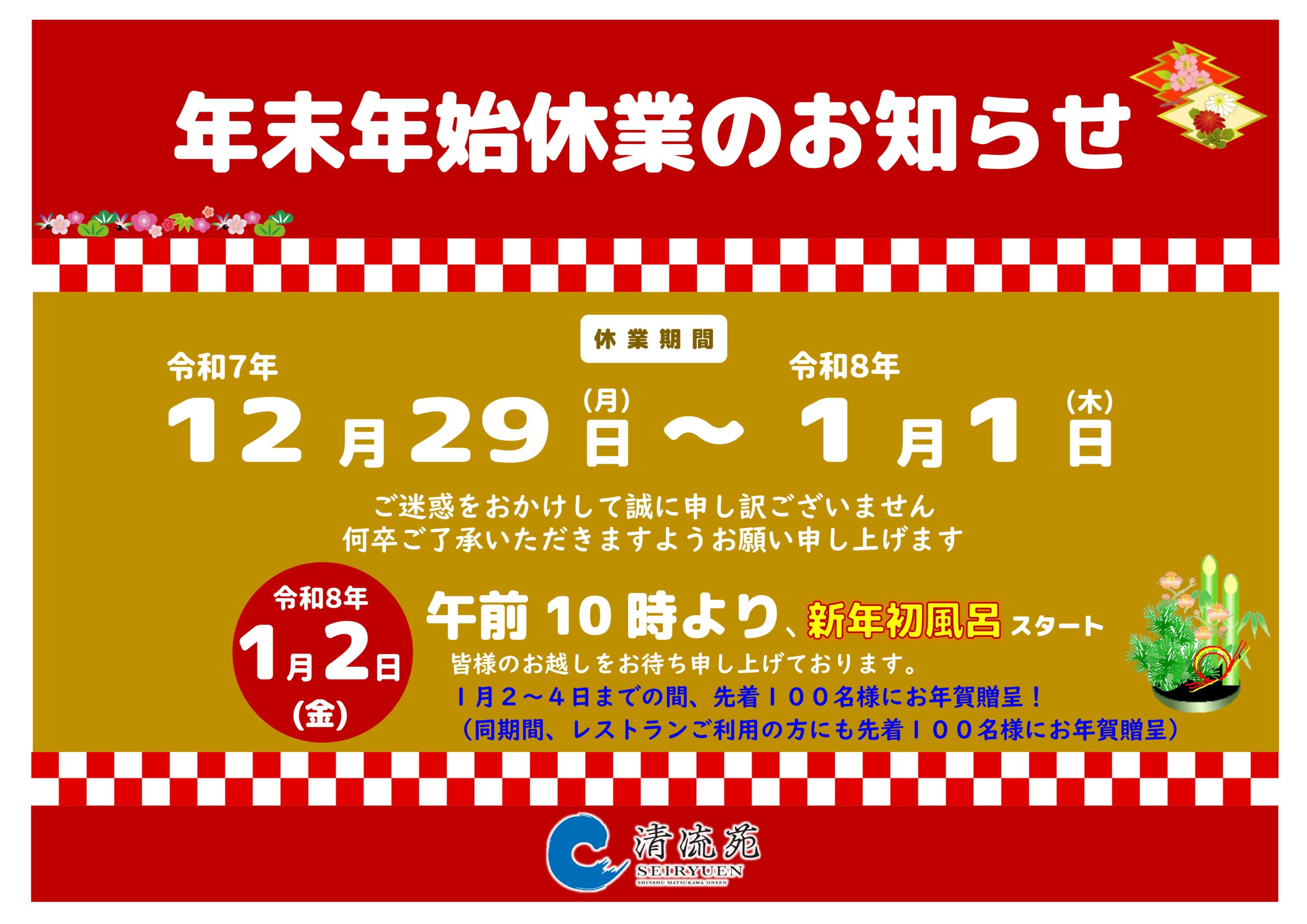 年末年始休業のお知らせ